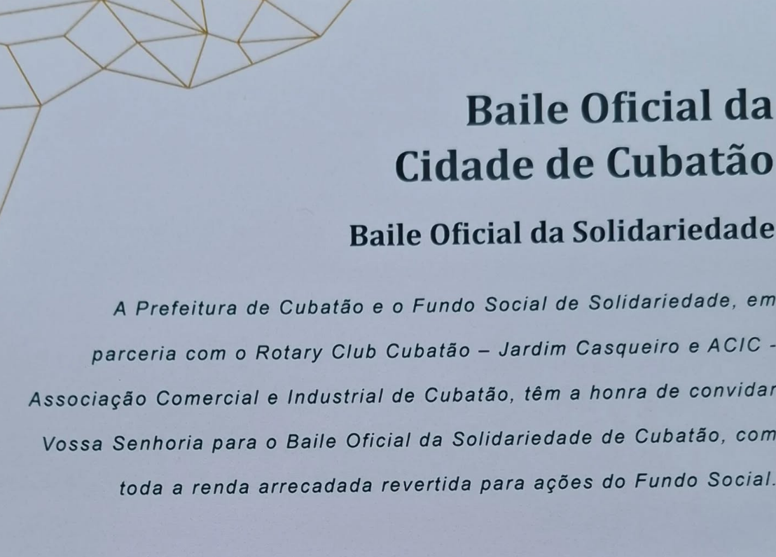 A comemoração se dará dia 17 de Abril no "Baile Oficial da Cidade de Cubatao" e toda receita oriunda da arrecadação será destinada ao Fundo de Solidariedade do município.